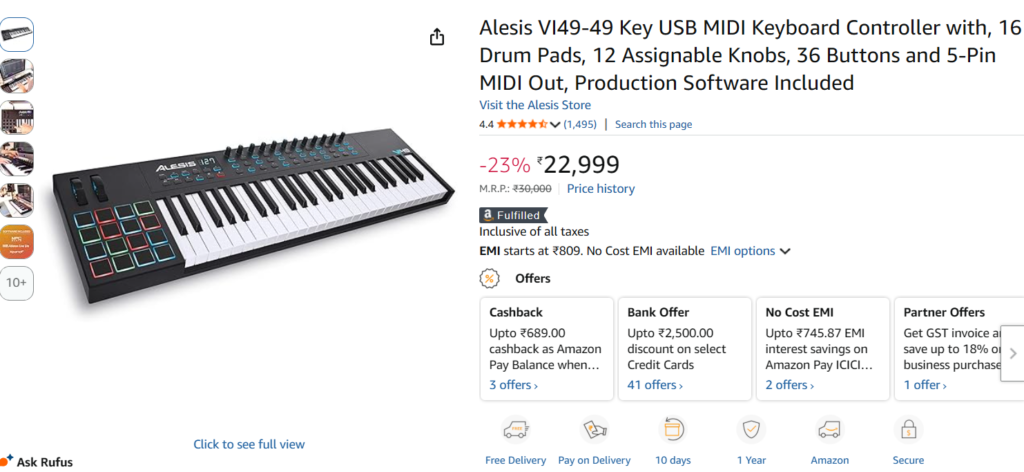 If you want a reliable and feature-rich MIDI keyboard controller, the Alesis VI49 is a strong option.