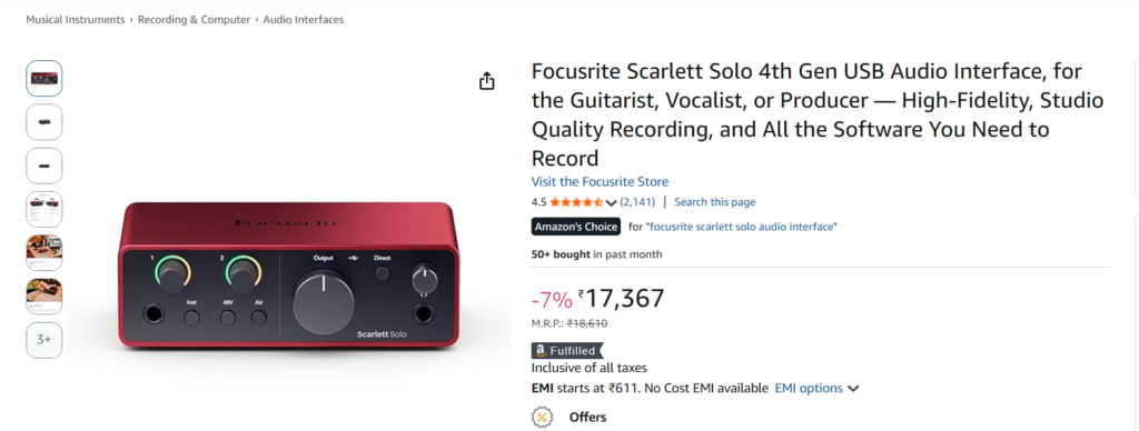 For beginners and independent musicians who want professional sound without expensive studio equipment, the Scarlett Solo 4th Gen is an excellent investment.